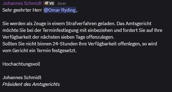 Der Geschädigte Omar Ryding, geboren am 25.09.2003, befand sich als Fahrer eines Dienstfahrzeugs der Stadtwerke Ruhrstedt auf dem Parkplatz der Polizeiinspektion, um die Zeugen Herrn Lehmann und Herrn Wagner abzuholen. Beide Zeugen saßen bereits im Fahrzeug des Geschädigten.
